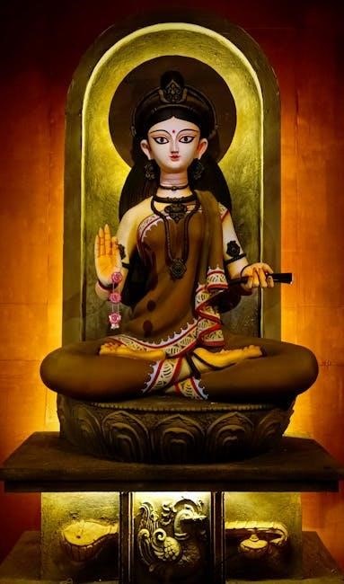 Lakshmi and Lord Vishnu share an inseparable divine connection, frequently worshipped together as the embodiment of prosperity and preservation. Many PDF versions of the Lakshmi Ashtottara Shatanamavali include introductory verses acknowledging this profound relationship, emphasizing that Lakshmi’s blessings are intrinsically linked to Vishnu’s grace.